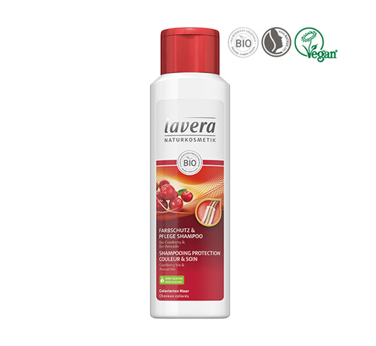 LE SHAMPOOING PROTECTION COULEUR BIO LAVERAPour préserver l'éclat de votre coloration, offrez à vos cheveux un soin riche et intense avec le Shampooing Protection couleur & Soin de lavera. La formule à base de cranberry bio et avocat bio nettoie et nourrit les cheveux de manière naturelle. PETITE ASTUCE LES + DU SHAMPOOING