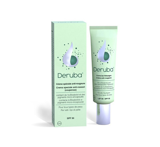 La crème anti-rougeurs Deruba SPF50 contient des pigments colorés ultra fins qui entrent directement au contact de la peau. Elle parvient à masquer instantanément les rougeurs, à les atténuer durablement et prévient la formation de nouvelles rougeurs. Plus efficace que les complément alimentaires anti-rougeurs, cette crème allie effet immédiat, effet durable et effet protecteur pour une peau qui retrouve santé et beauté.