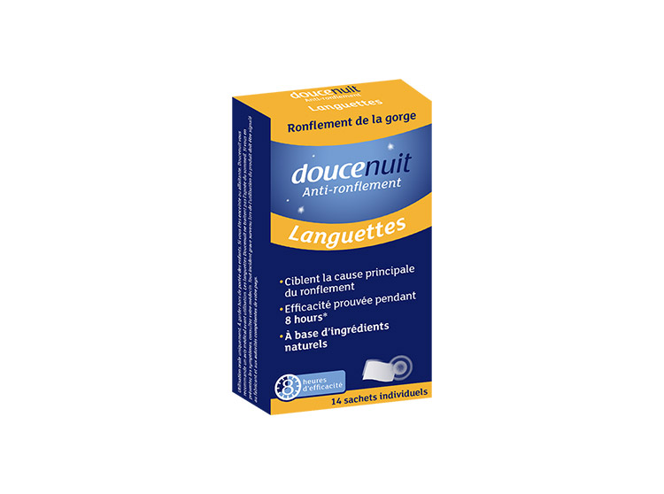 Les Languettes Doucenuit Anti-ronflement agissent sur l'origine principale du ronflement et sont une alternative discrète et pratique du Spray Gorge. Pratiques et discrètes, elles fondent en 60 secondes. Elles sont idéales pour ceux qui voyagent. Ces petites languettes au gout mentholé contiennent une formule à base de composés naturels à libération progressive qui lubrifie tout au long de la nuit les tissus mous à l'arrière de la gorge et diminue ainsi les vibrations et les causes du ronflement.