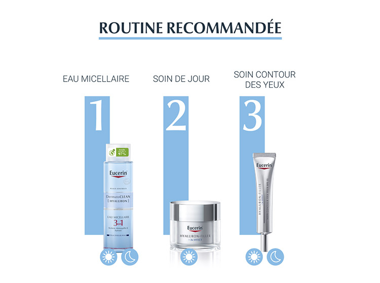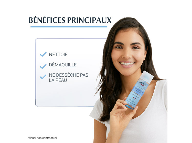 L'Eau Micellaire 3 en 1 Eucerin DermatoCLEAN [HYALURON] est un nettoyant à la fois doux et efficace pour le visage qui élimine les impuretés et le maquillage du visage et des yeux sans dessécher la peau.