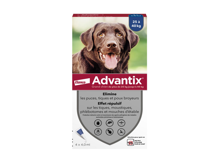 Les avantages des pipettes antiparasitaires Elanco Advantix Grand chien de 25 à 40 kg :