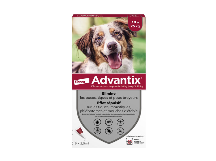 Les avantages des pipettes antiparasitaires Elanco Advantix Moyen chien de 10 à 25 kg :