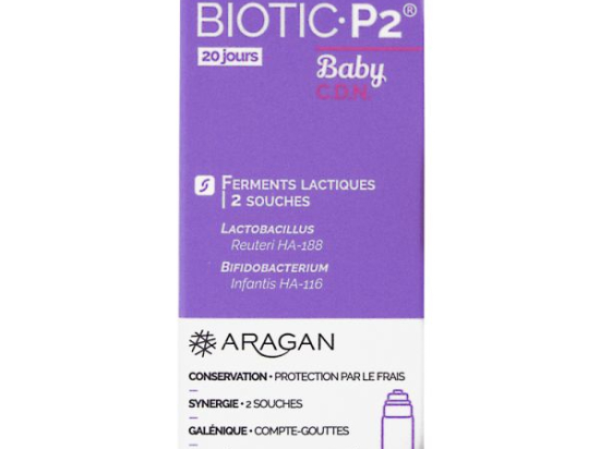 Biotic P2 baby de Aragan apporte une aide à bébé afin de rééquilibrer sa flore intestinale. Bébé pleure moins et ne souffre d'aucun effet secondaire.