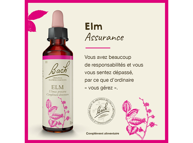 Fleurs de Bach Original, Fleur de Bach compte-gouttes, Fleur de bach pour le bien-être émotionnel, Elixir floral, Fleur de Bach émotions, Fleur de Bach assurance, Fleur de Bach Elm, Fleur de Bach orme, Fleur de Bach tristesse, complément alimentaire naturel, complément alimentaire assurance, complément alimentaire détermination, complément alimentaire confiance en soi, complément alimentaire équilibre émotionnel, complément alimentaire à base de plantes, complément alimentaire en gouttes buvable.