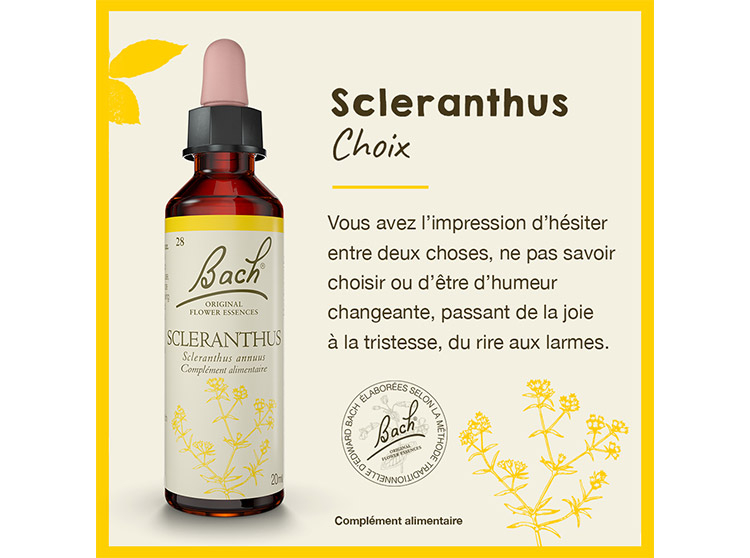 Fleurs de Bach Original, Fleur de Bach compte-gouttes, Fleur de bach pour le bien-être émotionnel, Elixir floral, Fleur de Bach émotions, Fleur de Bach choix, Fleur de Bach Scleranthus, Fleur de Bach scléranthe, Fleur de Bach incertitude, complément alimentaire naturel, complément alimentaire indécision, complément alimentaire choix, complément alimentaire prise de décision, complément alimentaire équilibre émotionnel, complément alimentaire à base de plantes, complément alimentaire en gouttes buvable.