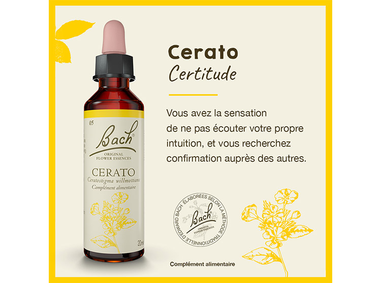 Fleurs de Bach Original, Fleur de Bach compte-gouttes, Fleur de bach pour le bien-être émotionnel, Elixir floral, Fleur de Bach émotions, Fleur de Bach incertitude, Fleur de Bach Cerato, Fleur de Bach, complément alimentaire incertitude, complément alimentaire naturel, complément alimentaire à base de plantes, complément alimentaire buvable, complément alimentaire pour gérer les émotions, complément alimentaire compte-gouttes.