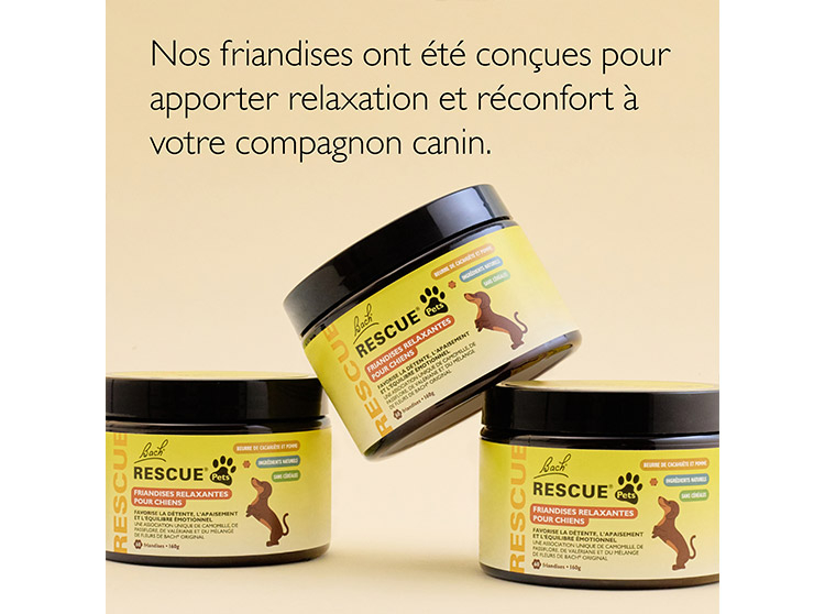 Rescue Pets Friandises pour chiens est une solution naturelle pour favoriser la détente et la relaxation chez votre compagnon à 4 pattes.