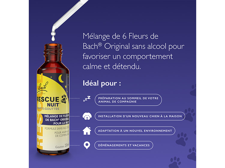 Naturel et simple d'utilisation, Rescue Pets Nuit est le choix idéal pour améliorer le sommeil de votre animal de compagnie en toute sérénité.
