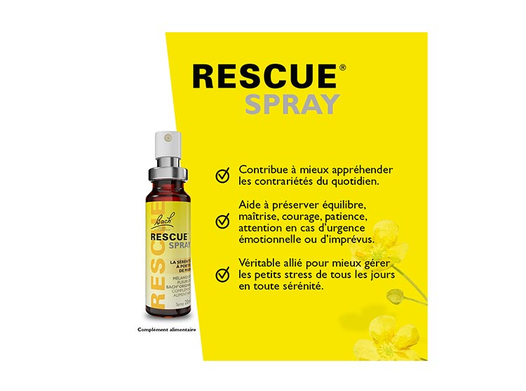 Le complément alimentaire RESCUE® en format spray est l'indispensable du sac à main, hyper pratique il vous accompagne partout :