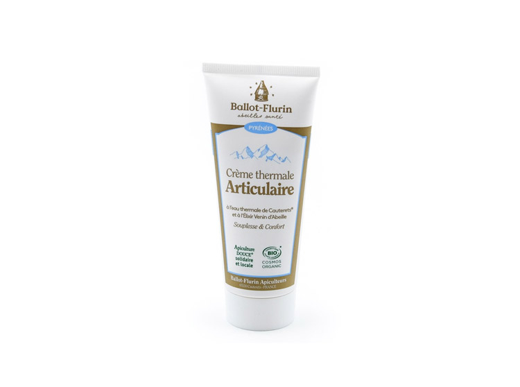 Soulager et assouplir : Première préparation au monde alliant la puissance de l’apithérapie aux vertus d’une eau thermale riche en soufre et en silice reconnue pour son usage en rhumatologie, notre Crème thermale Articulaire soulage les tensions et assouplit naturellement. Riche en actifs nobles remarquables, elle contient notamment de la propolis blanche scientifiquement reconnue pour sa richesse en antioxydants (polyphénols), ainsi que des plantes de pays aux vertus anti-inflammatoires et apaisantes.