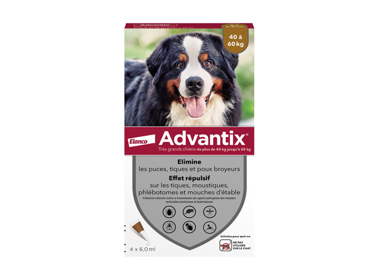 Les avantages des pipettes antiparasitaires Elanco Advantix Très grand chien de 40 à 60 kg :