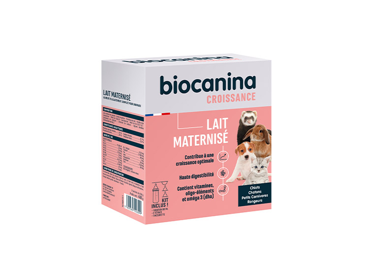 Le lait maternisé Biocanina contient des vitamines et des oligo-éléments. Le lait des femelles carnivores (chiennes, chattes) est d’une composition fondamentalement différente des laits des autres espèces animales : beaucoup plus concentré en protéines et graisses, il contient 3 fois moins de lactose (l’excès de lactose provoque des troubles digestifs). Pour élever des nouveau-nés, l’utilisation de laits de substitution spécifiquement formulés est indispensable. L’utilisation d’autres laits (vache, chèvre…) est formellement contre-indiquée.
