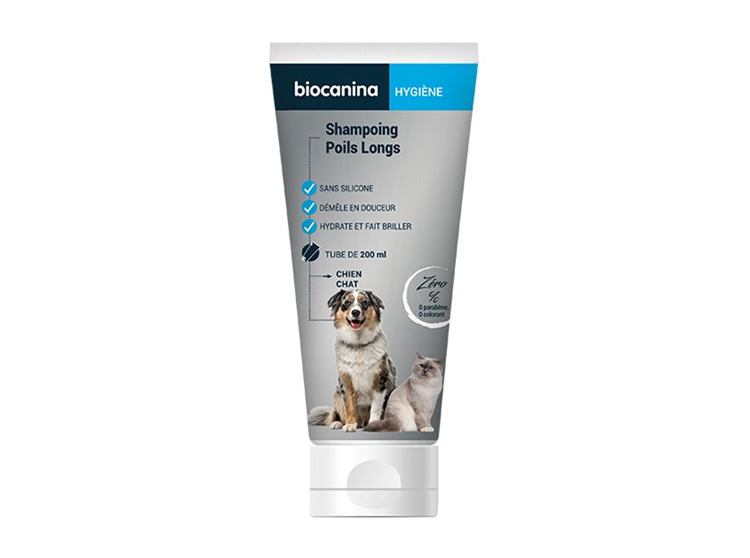 Le shampoing poils longs biocanina a une base lavante douce, sans Lauryl éther sulfate (LES), sans parabènes ni colorants. Il n’irrite pas la peau sensible des animaux et permet de l’hydrater et de la protéger à chaque shampoing. Produit d’hygiène pour animaux – Usage externe – Ne pas faire avaler.