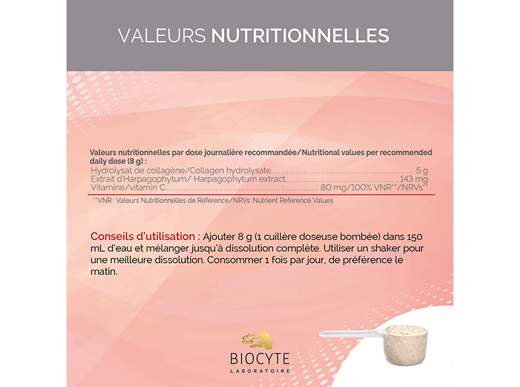 Informations nutritionnelles du complément alimentaire Biocyte Collagen Flex :