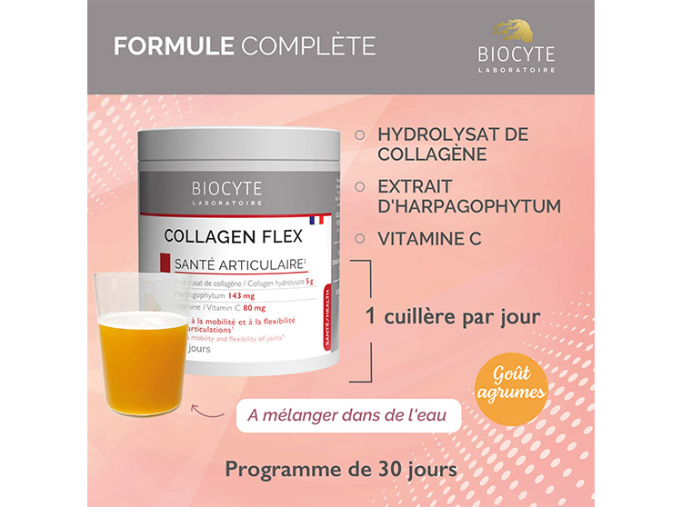Biocyte Collagen Flex, Complément alimentaire collagène, collagène en poudre Biocyte, Collagen Flex Biocyte anti-âge, collagène contre les douleurs articulaires, collagen flex Biocyte pour raffermir la peau, complément alimentaire anti-âge, complément alimentaire vitamine C, Vitamine C et collagène, collagène complément alimentaire confort articulaire, complément alimentaire articutions collagène, complément alimentaire anti-âge, complément alimentaire collagène anti-âge, complément alimentaire collagène santé articulaire, Collagen Flex Biocyte complément alimentaire collagène et vitamine C.