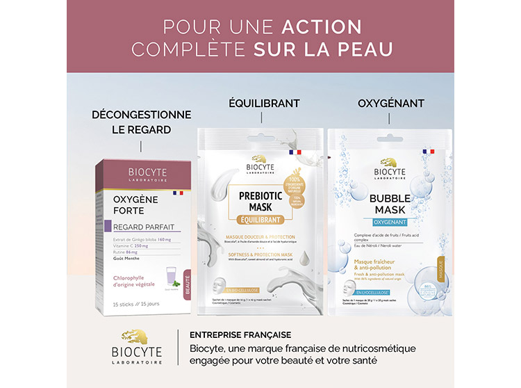 Le masque Biocyte Cucumber Mask permet de réguler la production de sébum, de purifier et de matifier la peau. Grâce à sa teneur en huile de Tea Tree, Biocyte Cucumber Mask permet de prévenir l’apparition de boutons et points noirs, afin d’uniformiser le grain de peau.