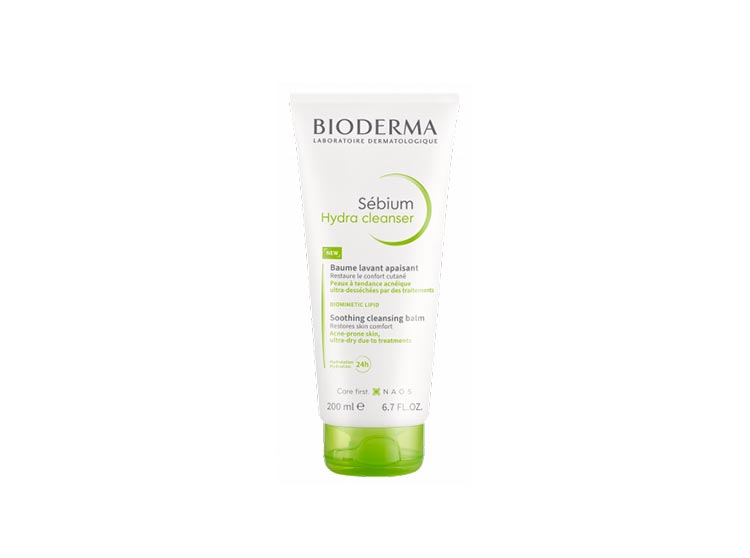 La recherche Bioderma a mis au point son 1er baume écobiologique pour restaurer le confort cutané lors des traitements ultra-desséchants de l'acné. Formulé avec 93% d'ingrédients biomimétiques, en parfaite affinité avec la peau, le nettoyant Sébium Hydra nettoie la peau en douceur tout en l'apaisant, en l'hydratant et en restaurant le confort cutané pendant 24h.