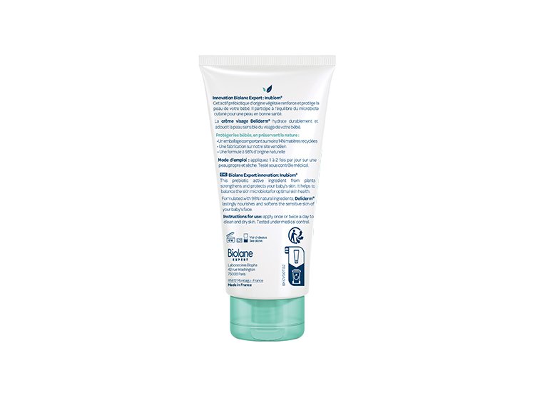 Résultat : La peau du bébé est hydratée et apaisée dès la première application. Testée sous contrôle dermatologique et garantie haute tolérance, la Crème Visage Deliderm® hydrate durablement la peau sensible du visage.