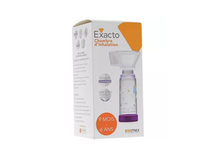 La chambre d'inhalation Biosynex dédiée aux bébés et enfants de 9 mois à 6 ans, permet de faciliter l'inhalation d'un traitement par aérosol doseur, et d'éviter ainsi les erreurs de coordination mains-poumons.