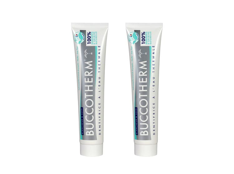 Le dentifrice Blancheur et Soin certifié BIO de Buccotherm est composé à 100% d'ingredients d'origine naturelle, la formule des dentrifrices associe l'Eau thermale de Castéra-Verduzan à la Silice et à l'hydroxapatite pour redonner leur blancheur naturelle aux dents en renforcant l'émail.