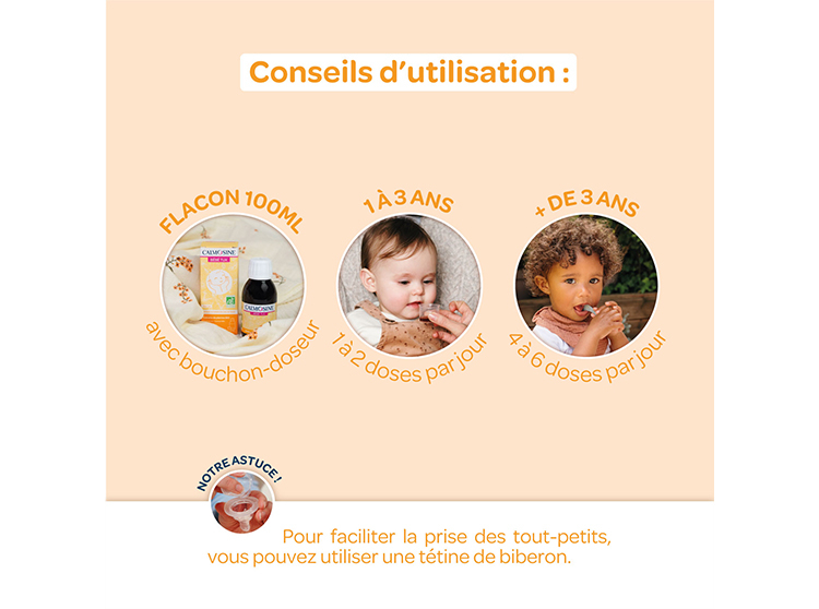 À boire pur au cours de la journée (remplir le bouchon-doseur jusqu'à la graduation 5ml, le rincer après chaque utilisation).