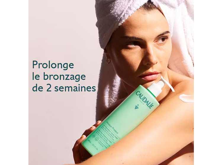 Visage et corps, le Lait Réparateur Après-Soleil Vinosun Protect nourrit, répare et apaise les peaux échauffées après chaque exposition au soleil tout en prolongeant le bronzage de 2 semaines. Enrichi en extrait d'aloe vera, sa texture non collante offre une sensation immédiate de fraîcheur et laisse la peau douce, hydratée et délicatement parfumée.