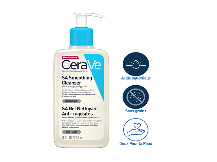 Développée avec des dermatologues, cette formule lissante sans grains aux 3 céramides essentiels, acide salicylique et acide hyaluronique nettoie en douceur, et favorise l'élimination des rugosités des peaux sèches sans altérer la barrière protectrice de la peau.