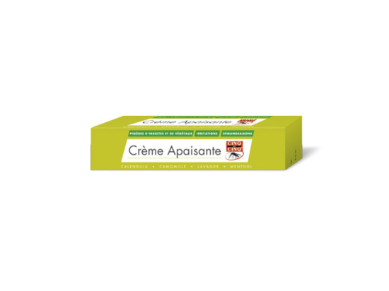 Cette crème apaisante Cinq sur Cinq calme et apaise les piqûres d'insectes, de végétaux, les démangeais et les irritations.