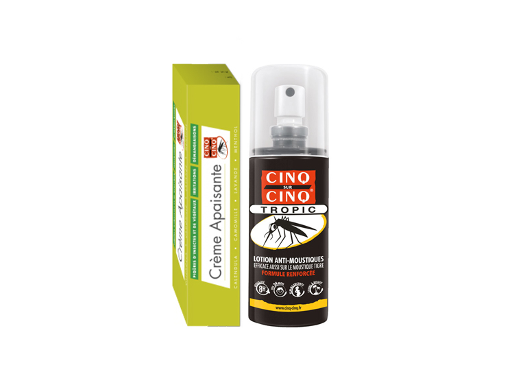 Ce lot de Spray Tropic et Crème Apaisante Cinq sur Cinq® est parfait pour vous protéger efficacement contre les moustiques et apaiser vos piqûres en un seul geste. Optez pour une double protection et un confort optimal lors de vos voyages ou de vos sorties en plein air !