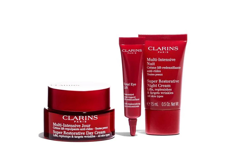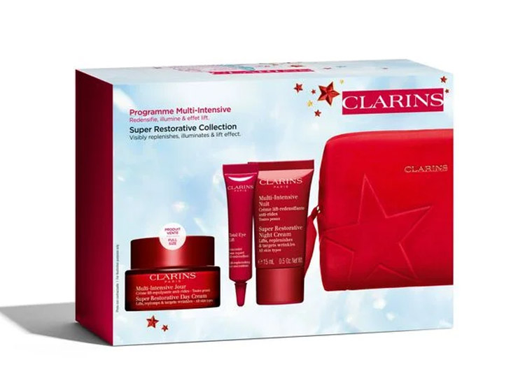 | Le coffret Multi-Intensive de Clarins est l'acolyte idéal des peaux matures. En effet, la gamme Multi-Intensive a été conçue afin de redensifier, lifter, illuminer, et hydrater les peaux matures, leur redonnant fermeté et éclat. Ce coffret contient 3 soins essentiels pour une routine complète de beauté : la Crème de Jour Multi-Intensive Toutes Peaux, la Crème de Nuit Multi-Intensive Toutes Peaux, Le Sérum Total Eye Lift, ainsi qu'un échantillon offert du Double Sérum Light Transversal. Ensemble, ces produits vous offre une routine complète et bénéfique à votre peau ! | ![]() |