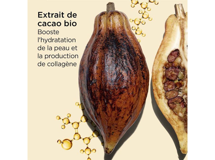 Extrait de cacao, Vitamine E, Aloe Vera, Huile d'Argan