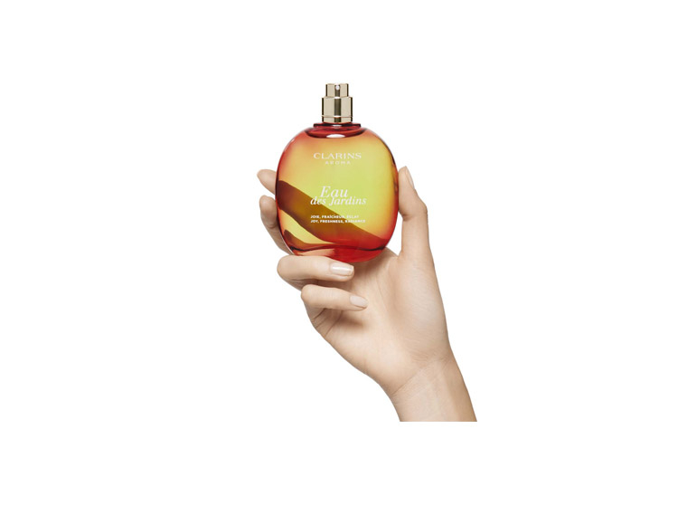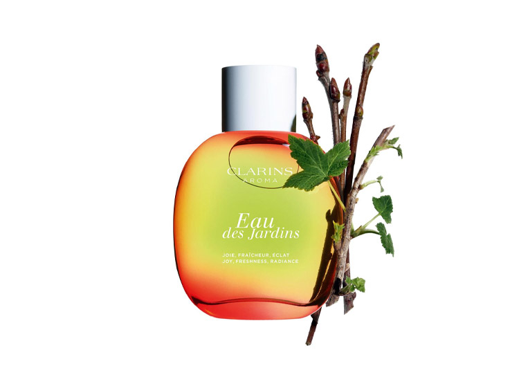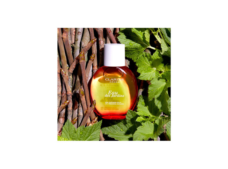L'iconique Eau Dynamisante Clarins se décline en Eau des Jardins, florale et pétillante. Cette Eau de Soins de 93% d'ingrédients d'origine naturelle parfume et éveille la joie. Elle est idéale pour chasser la morosité et donner du pep's dès le matin. Les zestes stimulants des notes de tête de citron, d'orange et de pamplemousse inondent la peau de fraîcheur. Puis les notes de coeur de laurier, menthe crépue et géranium combinées aux notes équilibrantes du cèdre procurent une agréable sensation de joie et de légèreté. L'extrait de bourgeon de sorbier bio raviveur d'éclat combiné à l'extrait de bourgeon de cassis bio aux propriétés apaisantes offrent une peau rayonnante. Son flacon vert célèbre la nature.