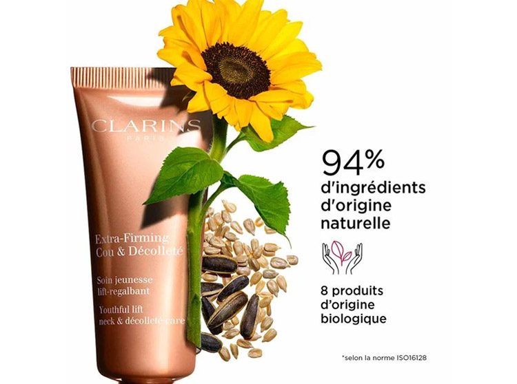 Le soin jeunesse liftant et galbant Extra Firming pour le cou et le décolleté conçu par Clarins, permet de lisser, galber et redonner un coup de boost aux peaux abimées du cou et du décolleté.