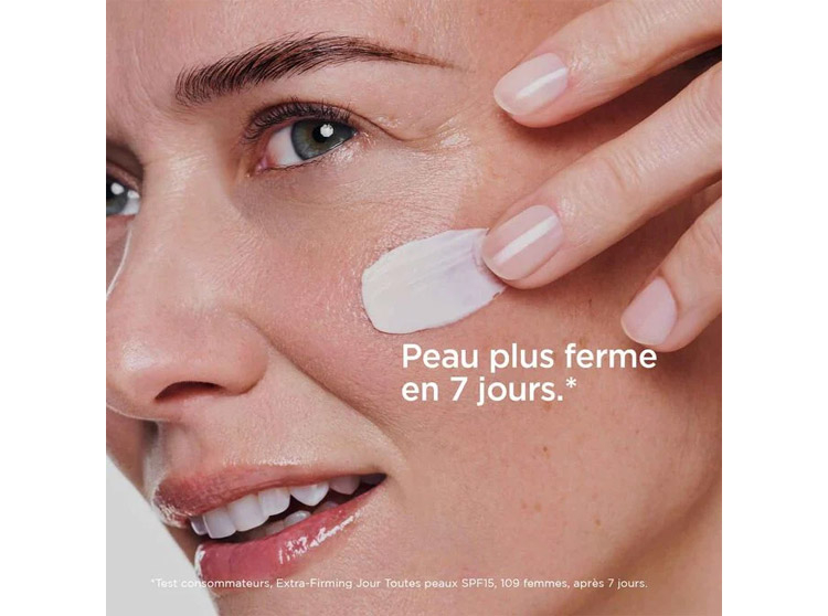 La Crème de Jour Anti-Âge au Collagène SPF15 de la gamme Extra-Firming de Clarins est idéale pour celles et ceux souhaitant agit sur les signes visibles du vieillissement cutané. En effet, Clarins propose dans cette crème une nouvelle innovation exclusive COLLAGEN TECHNOLOGY, qui allie un trio d'actifs pro-collagène, et qui agit contre la perte de fermeté de la peau.