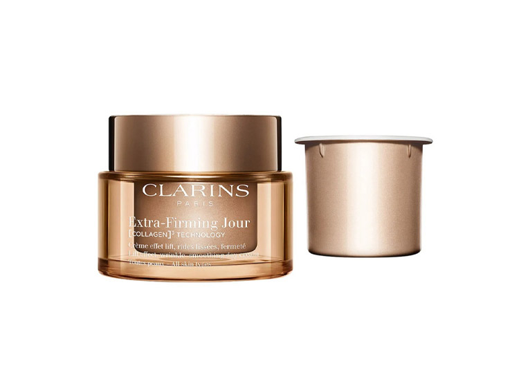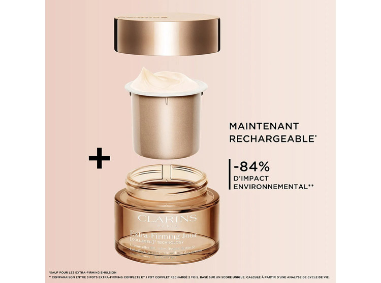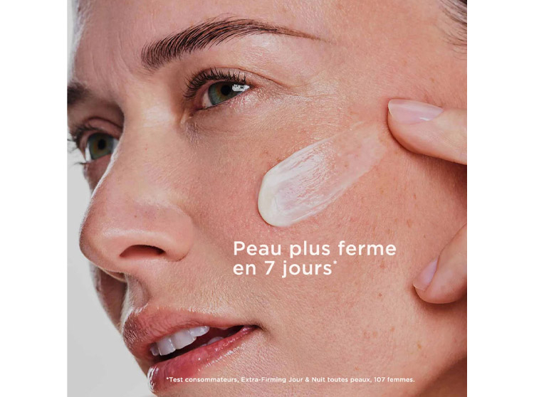 La crème de jour Extra-Firming de Clarins est un soin anti-âge conçu pour redonner fermeté et éclat à la peau. Grâce à une innovation exclusive, la technologie [COLLAGEN]³ TECHNOLOGY, ce soin aide à augmenter le capital collagène de la peau, favorisant un visage plus ferme, plus lisse et visiblement rajeuni. Dès 7 jours d'utilisation, la peau semble plus ferme, liftée, avec des contours du visage mieux définis.