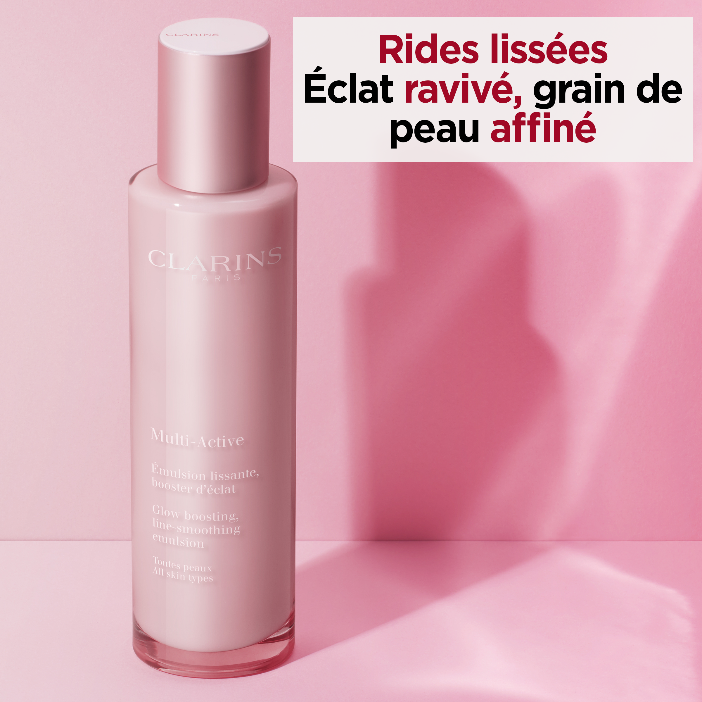 De jour comme de nuit, la peau nécessite de maintenir son niveau d’énergie et de résistance pour affronter une vie quotidienne intense. L'émulsion fine et légère Clarins Multi-Active, composée à 93% d'ingrédients d'origine naturelle, renferme une technologie inédite pour répondre à ces besoins :