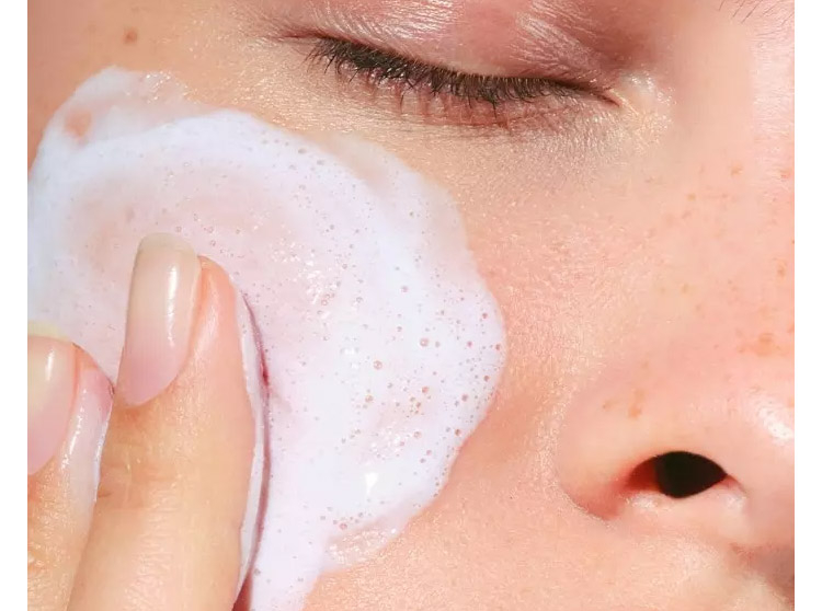 Sur visage humide, prélevez une noisette de nettoyant douc purifiant moussant, puis massez afin de faire mousser.