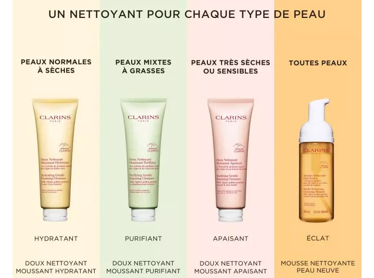 Ce nettoyant moussant, formulé avec des extraits d’herbes des Alpes du Domaine Clarins, démaquille tout en apaisant les peaux très sèches et sensibles. Il élimine efficacement les impuretés tout en maintenant l'équilibre de la peau. Sa nouvelle texture crémeuse, à la fois réconfortante et douce, se transforme en une mousse légère. Après utilisation, la peau est douce, fraîche et nette, prête à recevoir les soins.