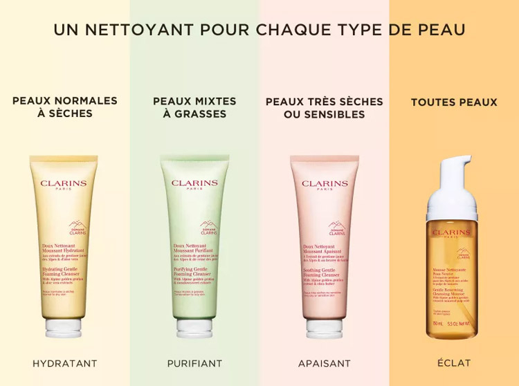C'est l'ami des peaux normales à sèches. Il est enrichi du complexe douceur du Domaine Clarins (gentiane jaune bio & mélisse bio) ainsi qu'en extrait d'aloé vera bio. Il laisse la peau nette, démaquille en douceur et adoucit. Grâce à des tensioactifs doux, il nettoie tout en aidant à préserver l'équilibre du microbiote cutané.