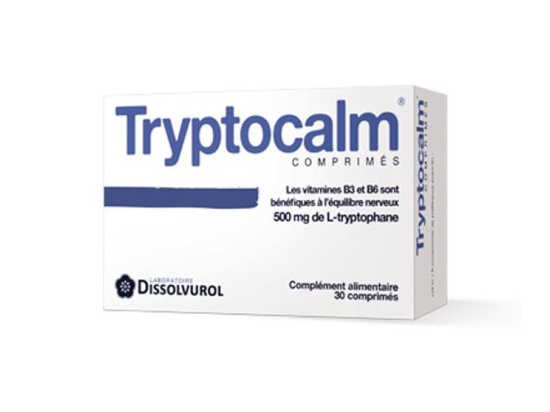 Tryptocalm du laboratoire Dissolvurol est un complément alimentaire à base d'acide aminé et de vitamines B3 et B6.
