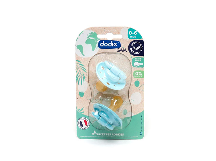 Pour répondre à ces trois besoins essentiels, Dodie a créé la sucette Dodie Gaia 0-6 mois. Cette sucette est dotée d'une téterelle ronde, toute douce, en caoutchouc naturel. Sa forme « cerise » est directement inspirée de la forme du sein maternel. La téterelle de cette sucette premier âge Dodie sera donc idéale pour les petit-bouts allaités qui retrouveront la douceur et le confort du sein de maman, pour un maximum de réconfort, en toute situation.