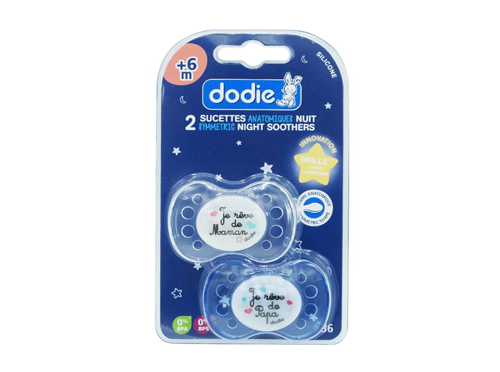 Le Duo Nuit Sucettes anatomiques +6mois est un lot de deux sucettes pour bébés en silicone. Téterelle et bouclier symétriques et des bords arrondis, le Duo Nuit Sucettes anatomiques +6mois est un lot de sucettes douces pour la peau. Dotés de Trous de ventilation pour éviter les irritations, ces sucettes des laboratoires Dodie rendent vos nuits plus belles grâce au confort qu'elles apportent à votre enfant.