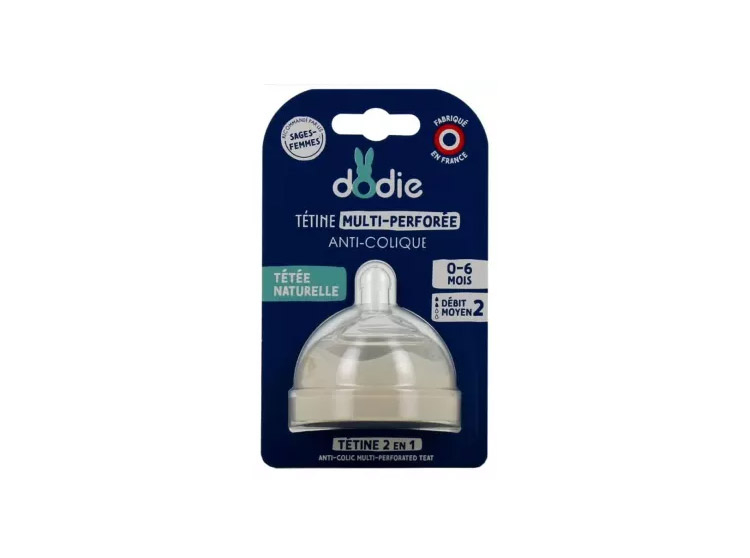 Dodie Tétine Multi-Perforée Anti-Colique Débit Moyen 0-6 Mois est une tétine dont :