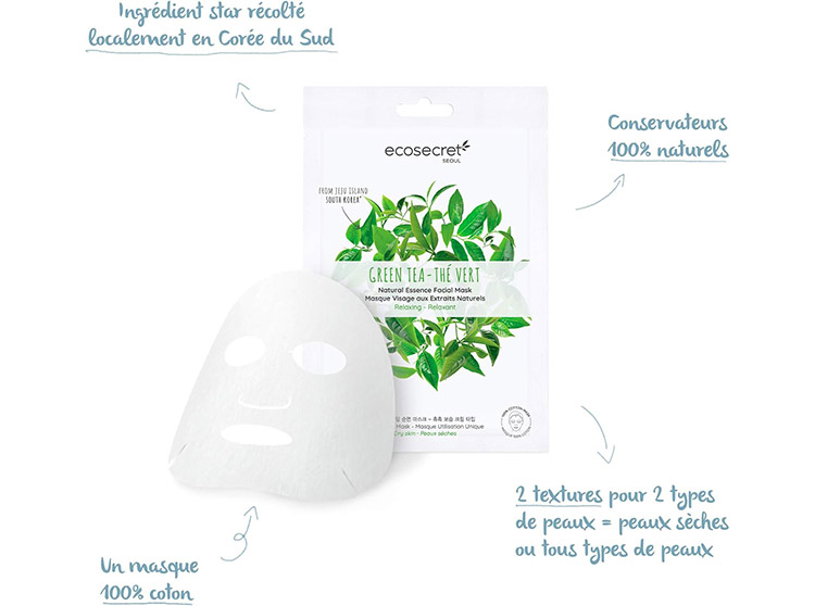 Découvrez le masque 100% coton infusé avec de l'extrait de thé vert provenant de l'île de Jeju, en Corée du Sud ! Ce masque unique allie tradition et innovation. Offrez à votre peau un moment de détente avec un effet cocooning qui apaise et adoucit. Sa texture crème fluide, spécialement conçue pour les peaux sèches, procure une sensation immédiate de confort et de relaxation. Résultat : une peau plus souple, plus douce, et profondément hydratée grâce à une action longue durée. |