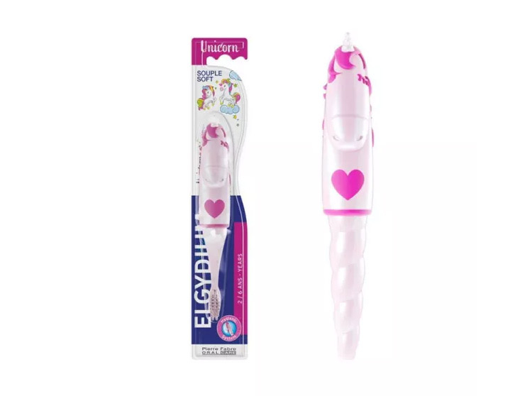 La brosse à dents Licorne conçu par la marque Elgydium est une brosse à dents dédiée aux enfants de 2 à 6 ans.