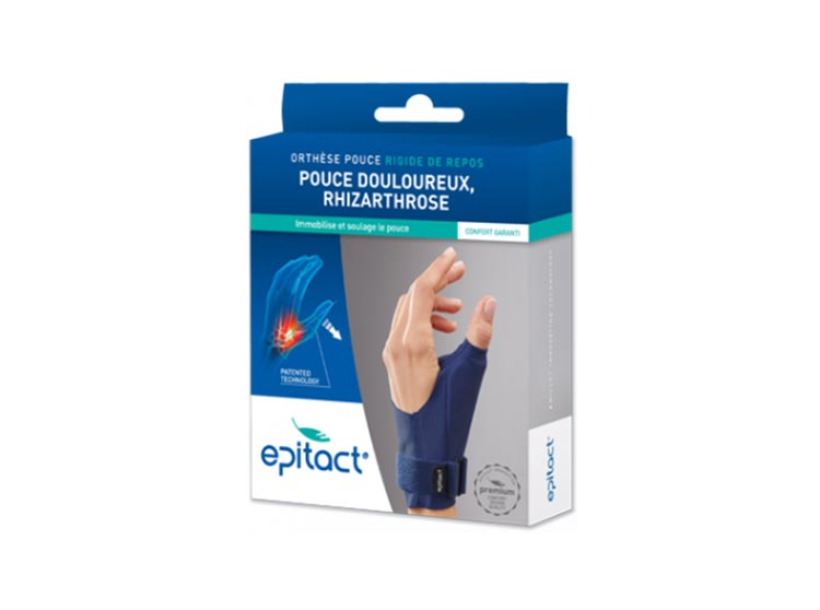 La nuit ou au repos, optez pour l’orthèse rigide de repos qui vise à maintenir le pouce en position neutre, soulager et prévenir l’évolution de la rhizarthrose .