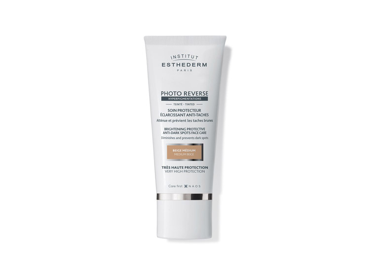 Photo Reverse Teinté Beige Médium est un soin solaire anti-taches haute protection éclaircissant, préventif et correcteur des hyperpigmentations.