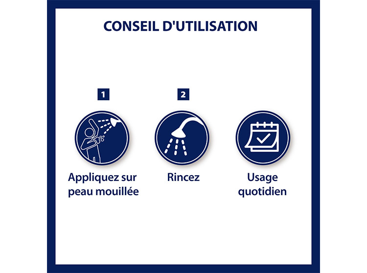Etiaxil Déo-Douche Citrus 24h s’utilise quotidiennement, pendant la douche ou le bain. Appliquer sur une peau mouillée, puis rincer avant l’application de votre anti-transpirant, ou de votre déodorant habituel.
