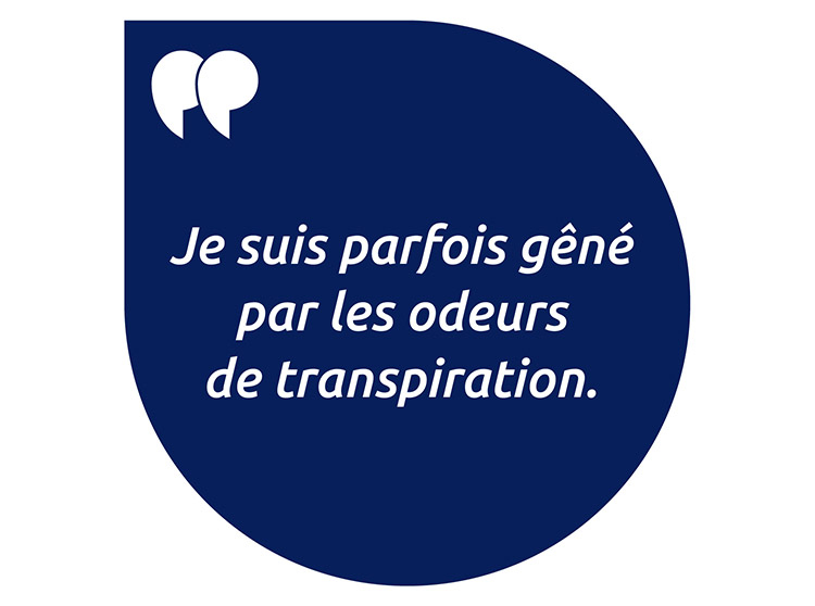 Sa formule haute tolérance est aussi anti-traces. (1) Test d’efficacité anti-transpirante par gravimétrie sur 32 personnes. Test d’usage sur 21 personnes. Anti-trace approuvé par 100% des utilisateurs.