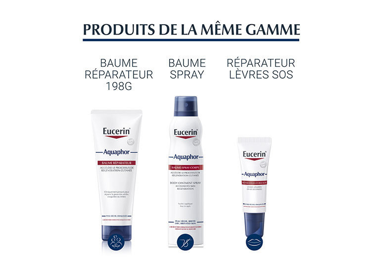 Notre peau travaille dur pour protéger notre corps, mais cela peut parfois la rendre très sèche, craquelée et irritée. Dans ces moments-là, elle a besoin d'un soin SOS. Eucerin Aquaphor Baume Réparateur apporte à la peau sèche à très sèche, craquelée et irritée le soin SOS dont elle a besoin. Ce baume sans eau forme une barrière douce et semi-occlusive sur la peau, favorisant le transfert naturel de vapeur d'eau et d'oxygène vers et depuis la peau. Cela permet à celle-ci de "respirer" et de renforcer sa barrière protectrice naturelle. |